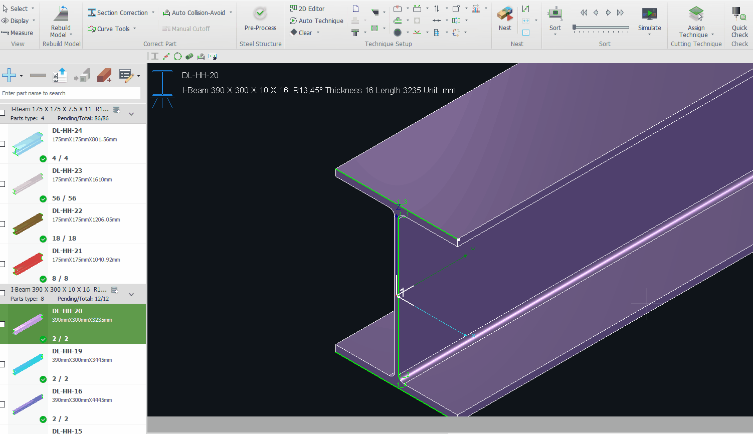 H-Beams: Use Pre-Process to assign the marking text to a designated face.